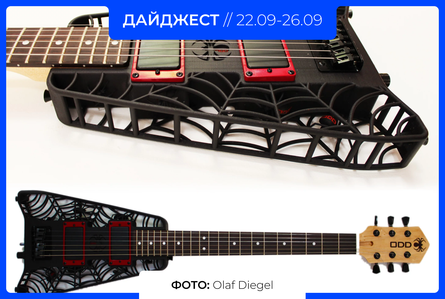Корпуса ODD Guitars — это не только инструменты, но и арт-объекты, демонстрирующие возможности аддитивного производства. По словам Дигеля, проект служит примером того, как технологии могут соединять инженерное мышление и креативный дизайн.