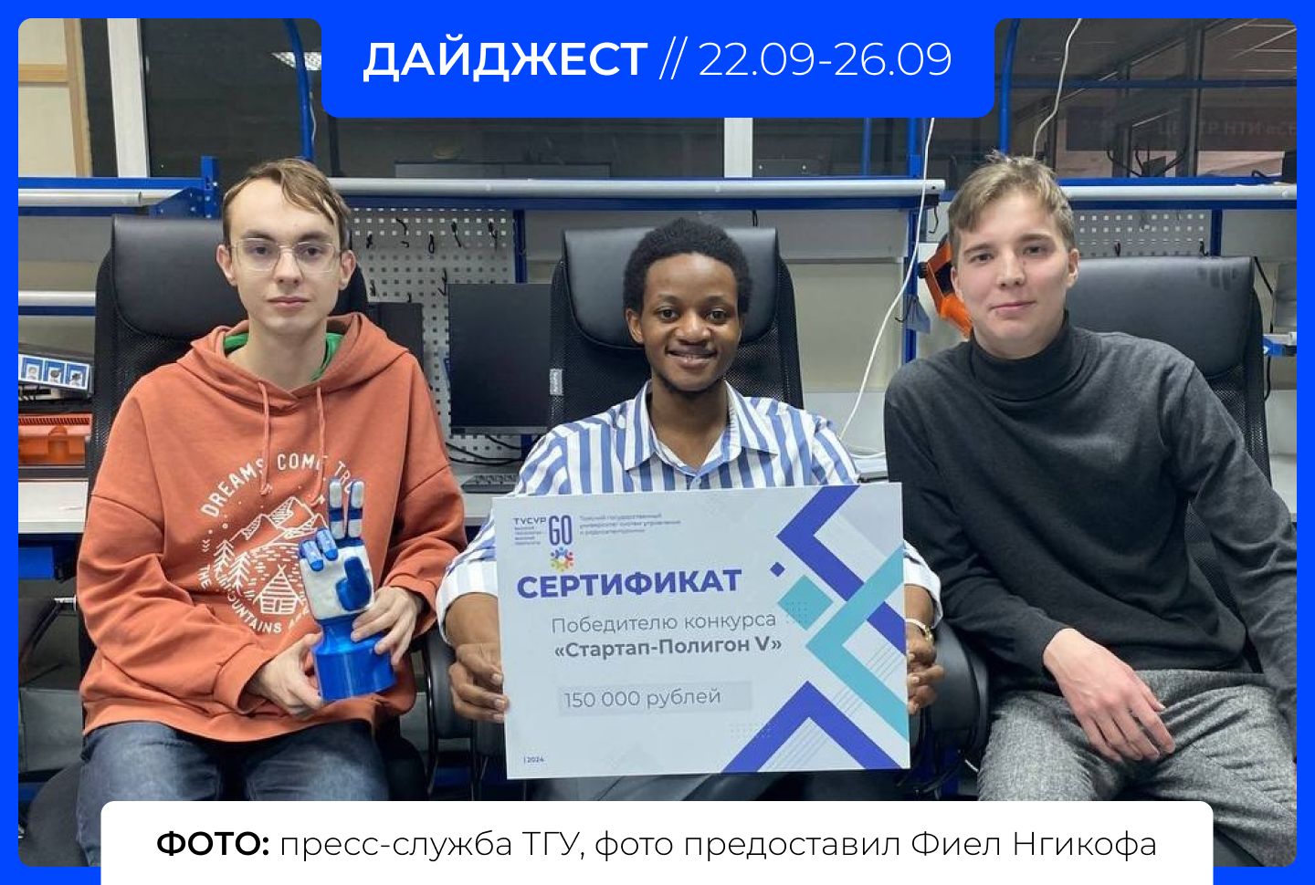 Проект «ИнноБионика» вошел в число победителей конкурса «Студенческий стартап» и получил грантовую поддержку в размере одного миллиона рублей от Фонда содействия инновациям, сообщает пресс-служба ТГУ. Создаваемая линейка функциональных протезов для людей с ампутациями предплечья и кисти актуальна для российского и международного рынка реабилитационной медицины.