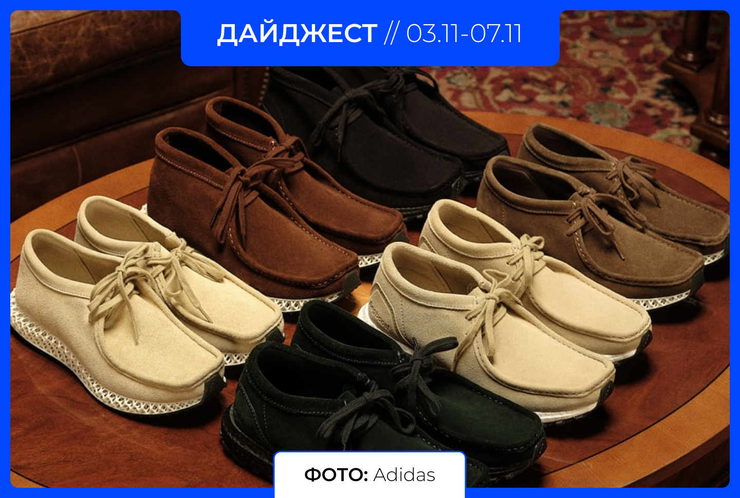 Бренды Adidas Originals и Clarks Originals представили совместную коллекцию, созданную с дизайнером Ронни Файгом в рамках линейки 8th Street. Новинка сочетает культовый силуэт Wallabee с передовыми технологиями Adidas — 4D и Ultraboost. Коллекция вышла 27 октября эксклюзивно через Kith.