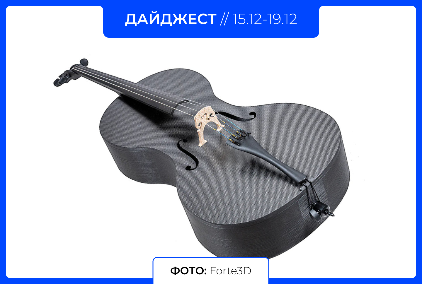 Стартап Forte3D, специализирующийся на 3D печатных музыкальных инструментах, представил более доступную и прочную версию классической виолончели. Инвесторы шоу «Shark Tank» вложили в проект $250 тыс. за 16% доли.