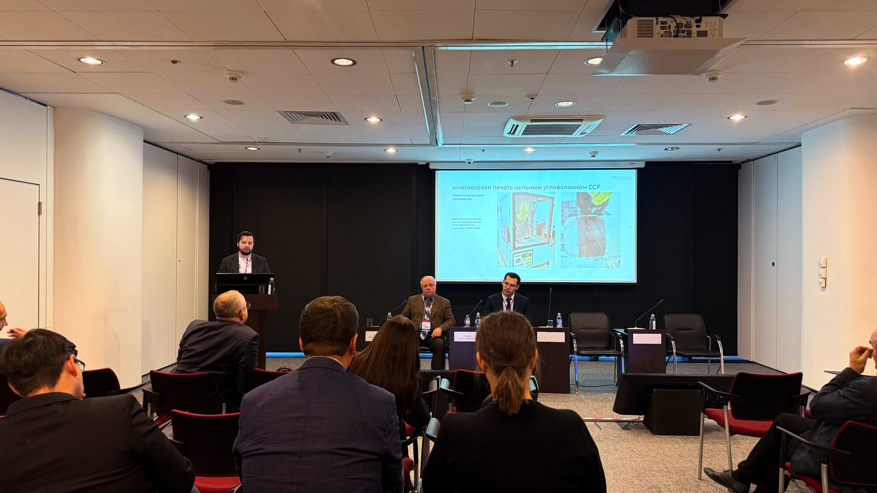 Кроме того, Евгений выступил с докладом «Аддитивные технологии и композитное производство» на панельной сессии «Композитные и новые материалы», организованной Департаментом металлургии и материалов Минпромторга России и ВК «Мир-Экспо». В ходе конференции участники обсудили реализацию национального проекта «Новые материалы и химия», внедрение инновационных композитных материалов, а также развитие технологических компетенций и укрепление технологического суверенитета страны.